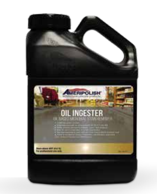 Ameripolish® Oil Ingester is a water-based microbial stain remover that consumes and breaks down oil-based stains and absorbs odors from the surface of concrete without causing damage or affecting any existing colorant, sealer, or stain protector. This biodegradable and VOC-compliant product is environmentally safe and can be used daily. Deeply embedded oil spots may take weeks to be removed; this is normal as oil tends to penetrate deep in the concrete. Oil Ingester eats away at the oil and does not wash it into WWTP or city drainage runoffs.
