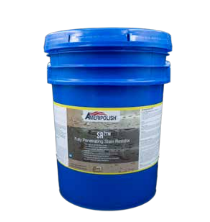 Ameripolish® SR²™ is a penetrating stain repellent specifically formulated to protect polished, dyed and nondyed concrete from oil and water-based stains. The water and oil repelling qualities of SR²™ provides superior stain protection on most substrates. SR²™ can be used as a standalone product but, to obtain optimum performance, Ameripolish® SR²™ is recommended for use with Ameripolish® 3D HS or HSL Densifiers.