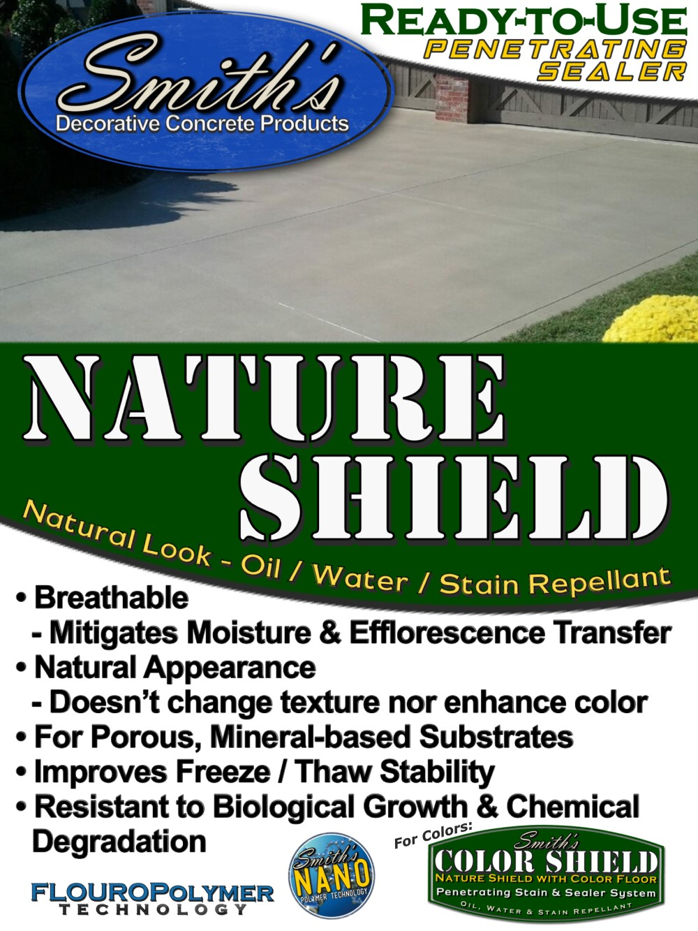 Nature Shield by Smith’s Concrete Stains is a high-quality, versatile, and easy-to-use protective sealer. Specially designed to provide effective and long-lasting protection, it shields your concrete surfaces from natural elements like weather, dirt, and UV rays. Made with a unique blend of ingredients, Nature Shield ensures your concrete maintains its aesthetic appeal without compromising its structural integrity. This product stands out for its exceptional reliability, ensuring your concrete surfaces remain in pristine condition for longer. Easy to apply and quick to dry, Nature Shield is designed to provide maximum convenience and save you time and effort. Whether you’re looking to protect a driveway, patio, or any other concrete surface, Nature Shield offers superior value for your investment. With Smith’s Concrete Stains, you can trust in a product that effortlessly combines effectiveness, convenience, and affordability. Experience the difference with Nature Shield, your ultimate defense against the elements.